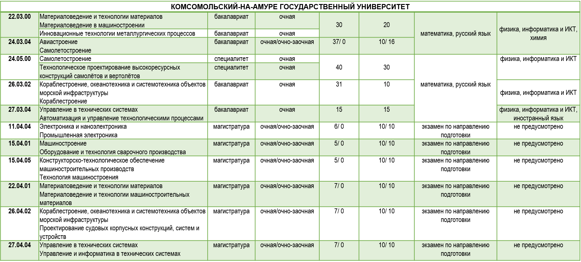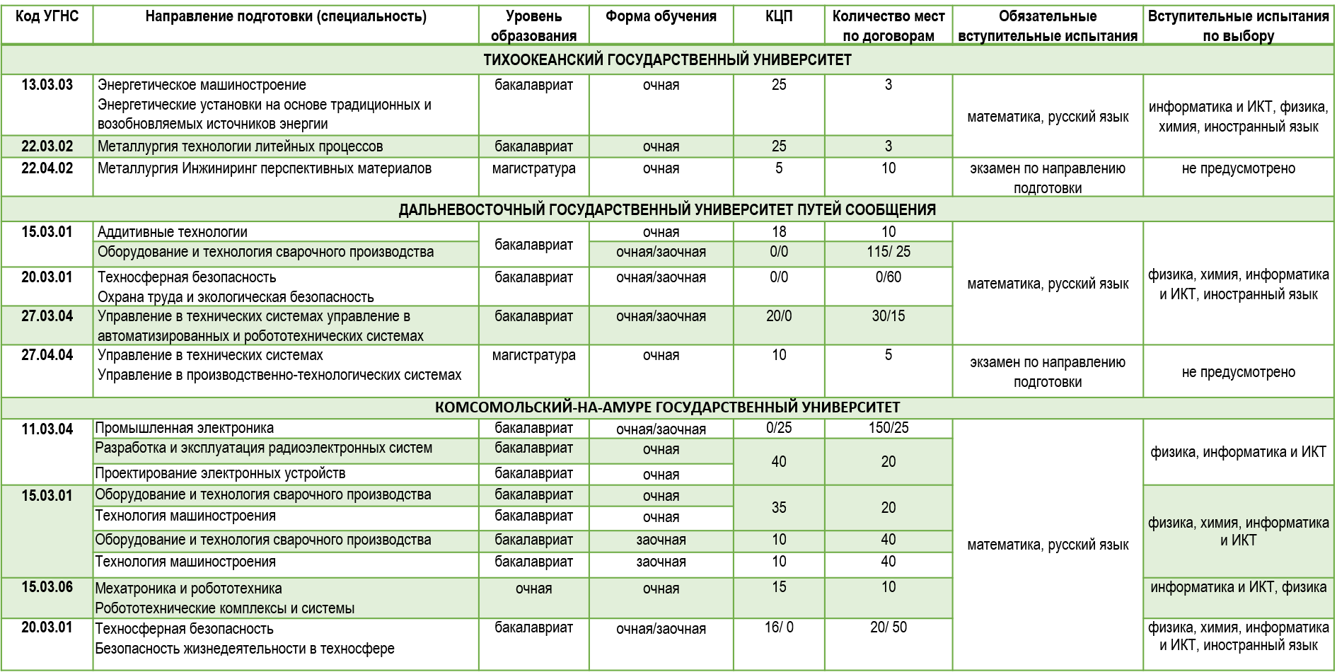 высшие учебные заведения, основные специальности