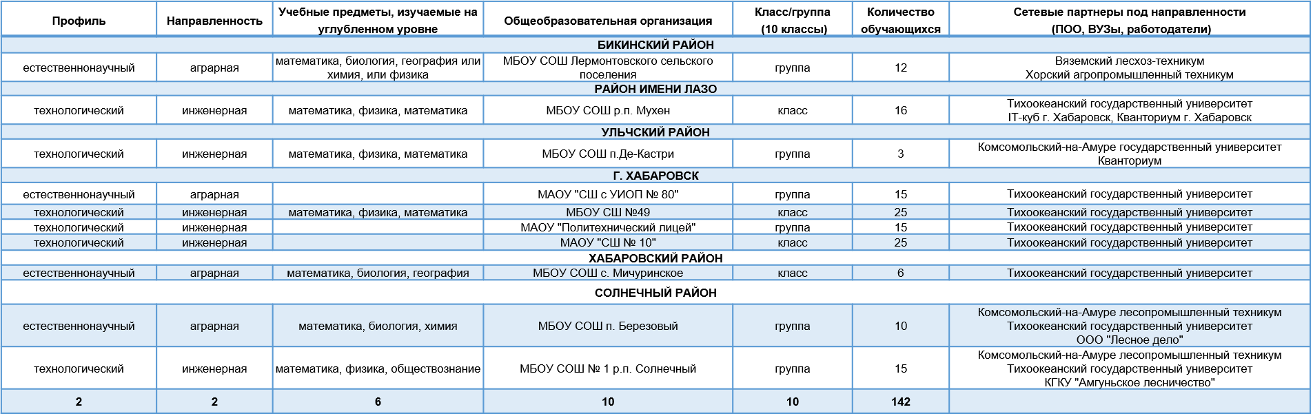 карта профильных классов на 2024/2025 учебный год
